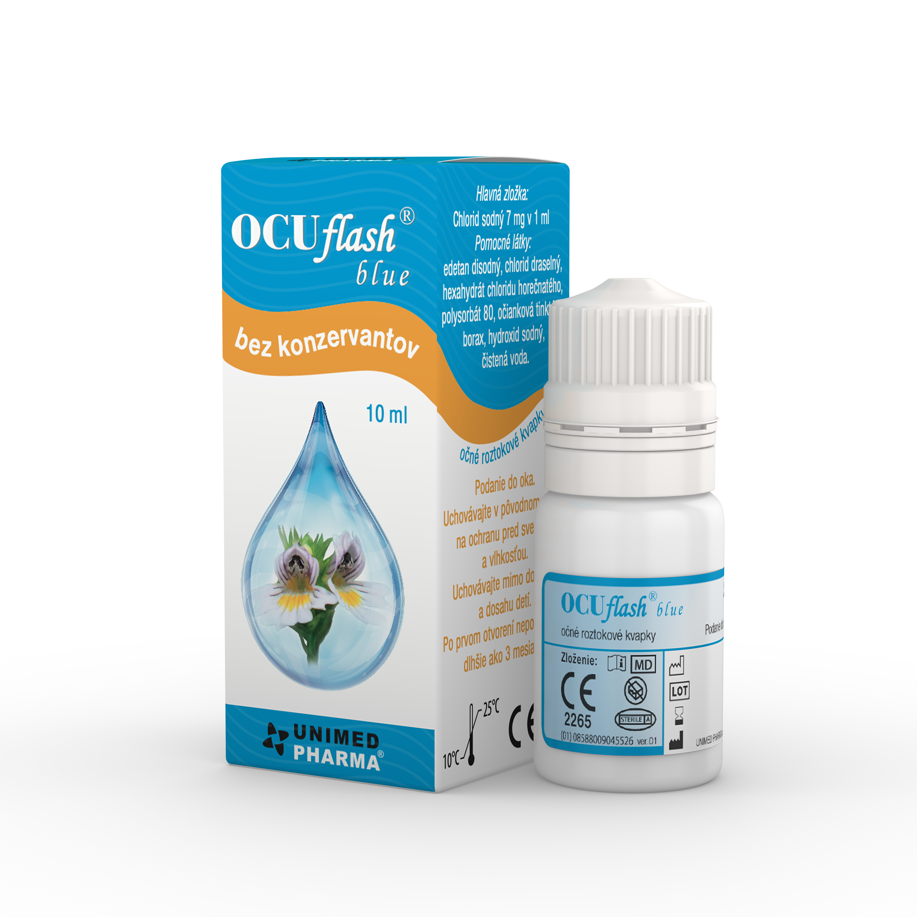 OCUflash blue sú očné roztokové kvapky bez konzervačných látok s pridaným výťažkom z očianky. Sú určené na kvapkanie do očí, výplach očí alebo obklady.